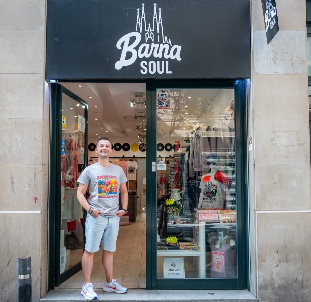 Dans le cĆur du Born, Barna Soul est plus quâune boutiqueâ: câest un espace de vie oĂč la mode rencontre les platines. FondĂ© par SĂ©bastien Casanova, Français installĂ© Ă Barcelone, le lieu propose des tâshirts au design inspirĂ© de lâarchitecture, des mosaĂŻques ou de la nature locale â tous Ă©laborĂ©s de façon responsable, imprimĂ©s Ă Barcelone. DĂšs 18âŻh, la boutique se transforme en scĂšne DJ, avec des sets pour faire battre le pavĂ© du quartier. Entrez pour la mode, restez pour lâambiance â une belle invitation Ă dĂ©couvrir la crĂ©ativitĂ© locale.